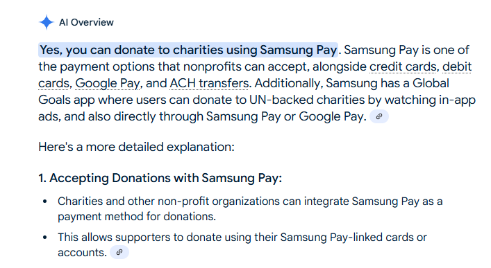Friends, in May, a line item appeared in my organization's bank account for an odd dollar-and-cents amount, with the notation "Samsung Gift." We have never received a donation from Samsung before. A bit of web searching suggested to me that Samsung uses Benevity to manage its program. I have a Benevity user account and downloaded data from about the last six months, scouring the files for something I might have missed, and found nothing. Does anyone have any insights into Samsung's workplace giving or matching gift programs? Should I be looking elsewhere for information about the gift?